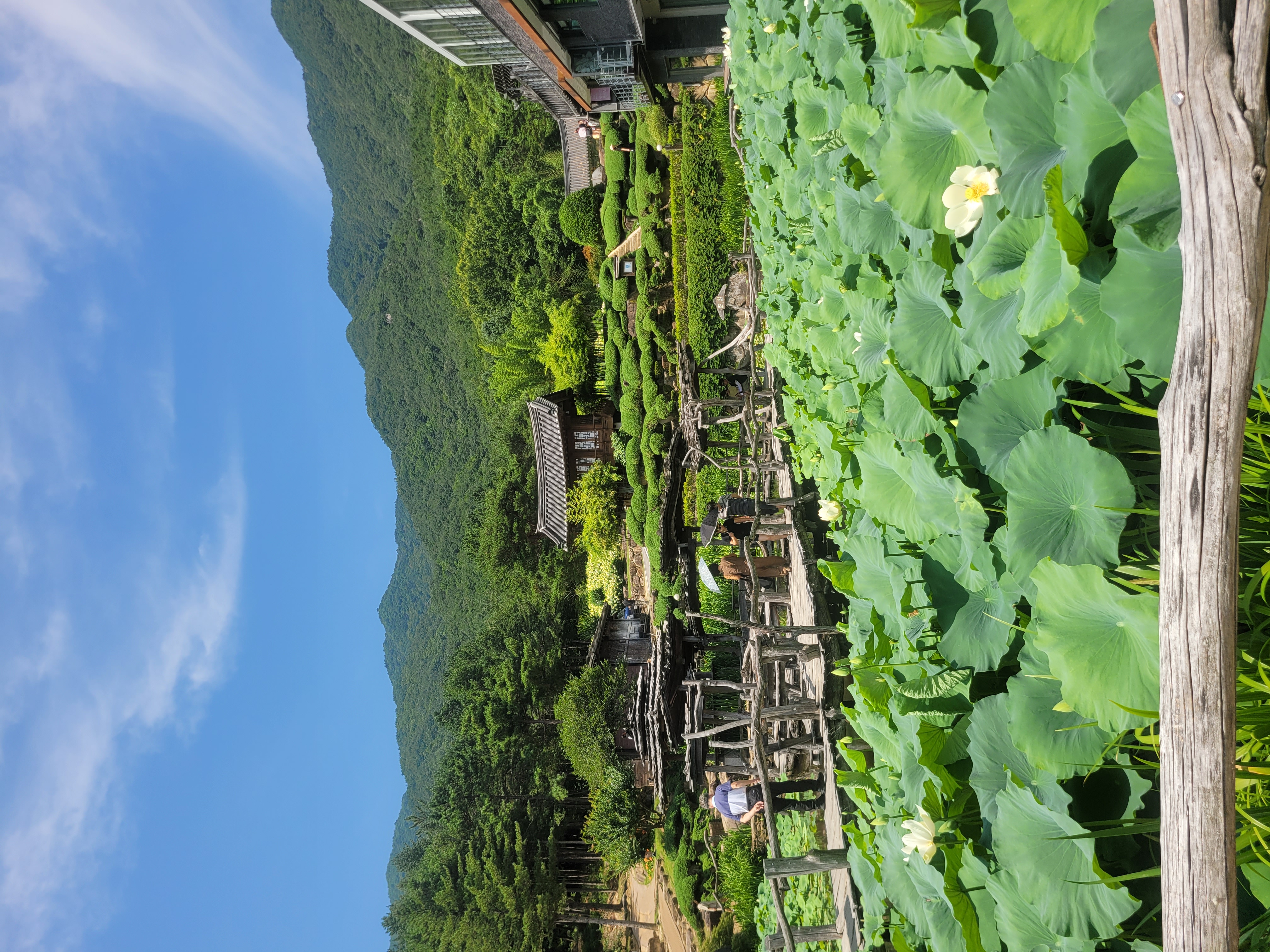 수선사에 들어서니 연꽃 연못이 눈앞에 펼쳐졌어요. 지금이 연꽃 개화 시즌이라 그런지 연꽃이 너무나 탐스럽고 아름다웠답니다. 연못 가운데 나무 다리와 주변 구조물이 자연과 완벽히 조화를 이루며 “어떻게 이렇게 예쁘게 만들었을까?” 감탄이 절로 나왔어요. 여경 스님이 30년간 정성으로 가꾼 공간이라니, 정말 대단했어요! 산청 여행의 하이라이트였답니다.